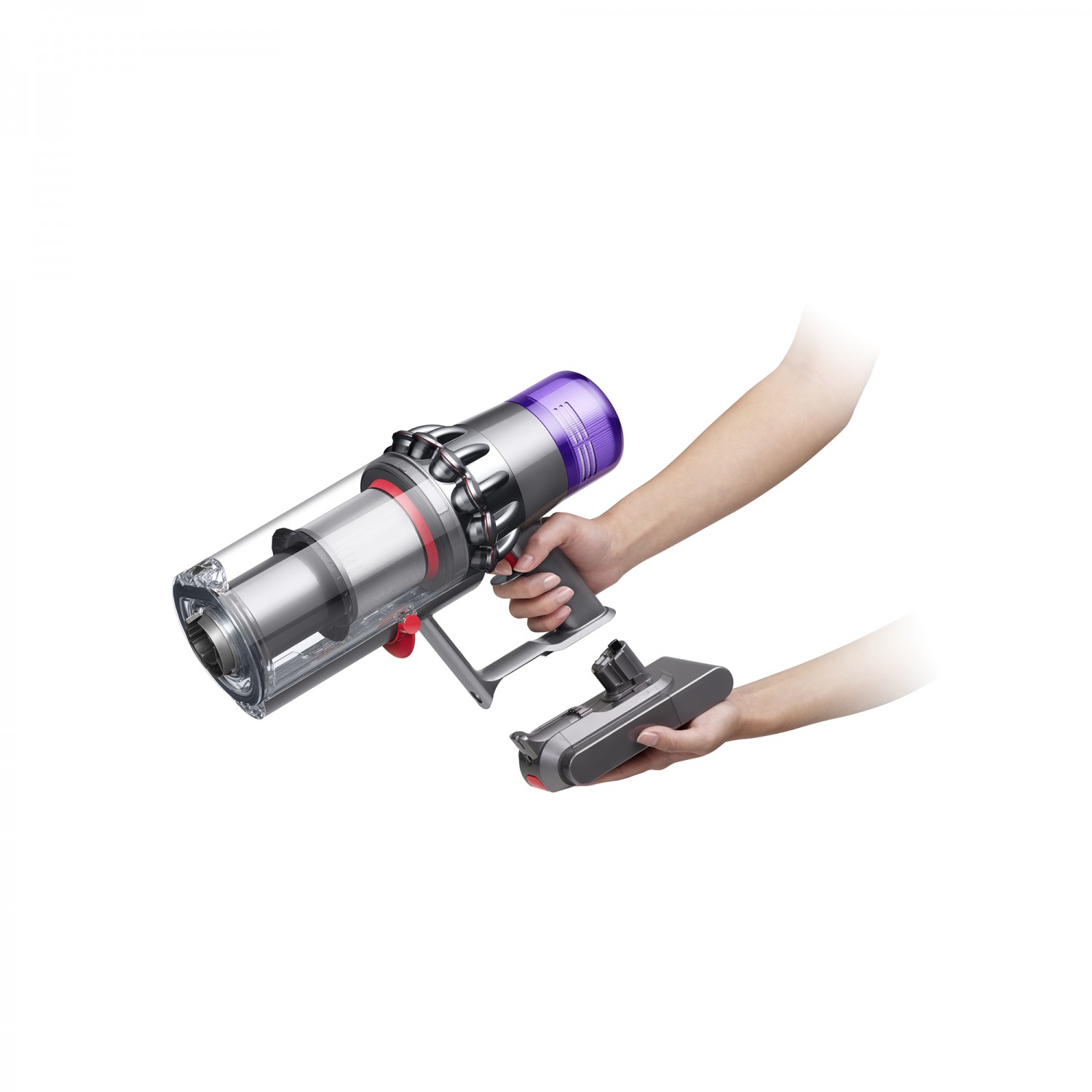 Беспроводной пылесос Dyson оснащен уникальной системой, которая автоматически регулирует и увеличивает мощность всасывания по мере необходимости. Для увеличения времени работы можно приобрести дополнительный аккумулятор. В комплект входят 7 насадок для уборки различных поверхностей.