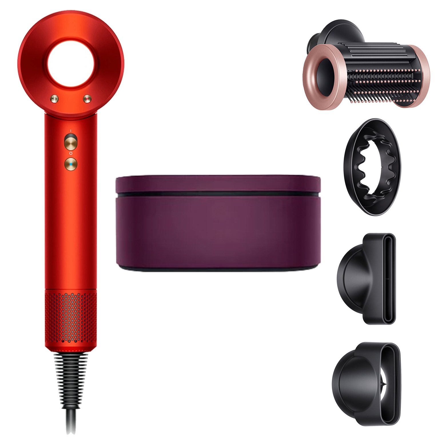 Устройство в насыщенном цвете "Топаз Оранж" будет стильным дополнением. В набор включены четыре насадки и крепкий кейс. Фен поддерживает идеальную температуру для защиты волос при сушке. После каждого использования волосы выглядят мягкими и сияющими.